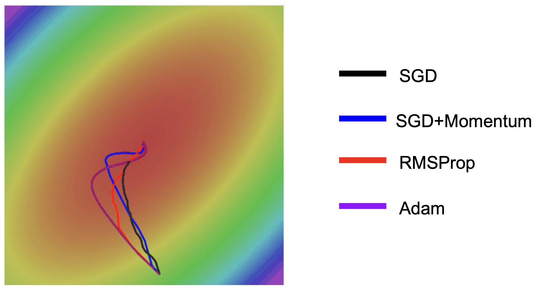 Adam 合并了 Momentum 和 RMSProp 系列良好的性质。下图是各优化器效果对比图,来自 CS231n 课程: